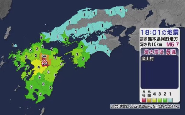 すぐに、震源地は熊本県阿蘇地方、震源の深さはおよそ10キロ、マグニチュード5.7と発表されましたね。