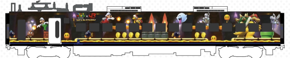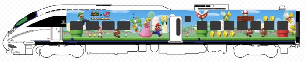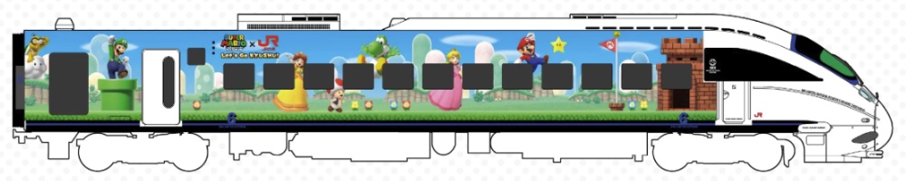昨日、29日から、「JR九州」と「スーパーマリオ」がコラボしたラッピング列車「スーパーマリオトレイン」の運行が始まったそうだ。