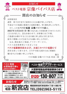 これで、宗像市には「ベスト電器」の店舗が無くなったわけだ。