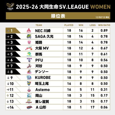 12月7日大同生命SV.LEAGUE WOMEN第9節 GAME2