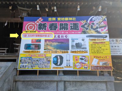 おみくじ代「1,000円」+景品代「500円」と捉えてみてください。