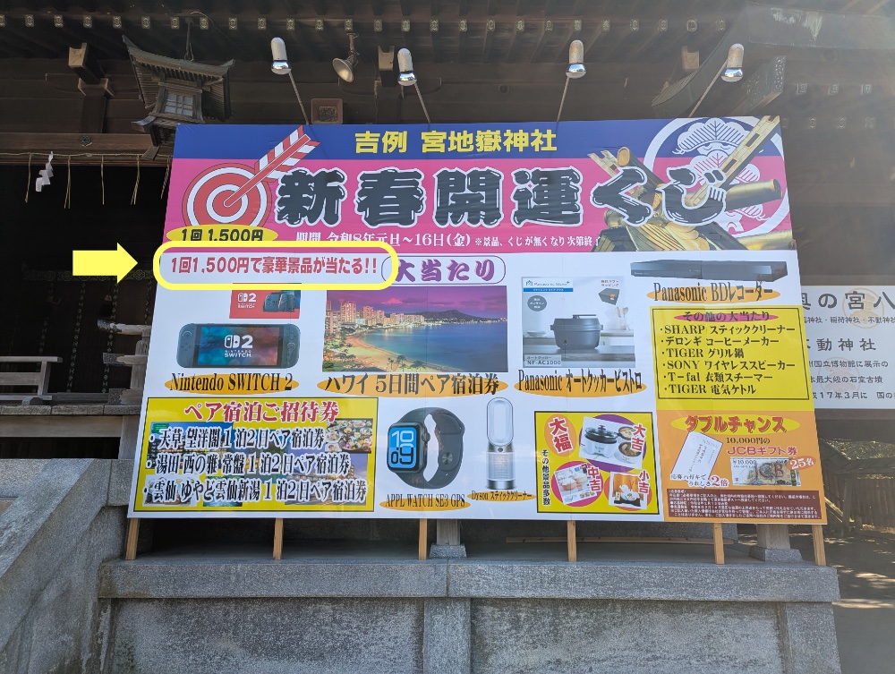 豪華な景品が当たるんだけど、それだけに金額も高い。「1,500円」だ。