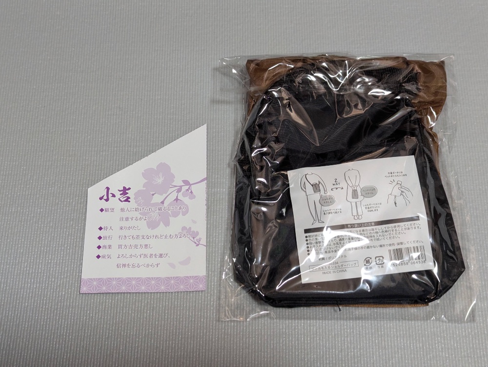 結果は、「小吉」、景品はポリエステル製のポーチ。