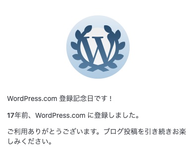 先日、「WordPress.com 登録記念日です!」という通知が来てた。