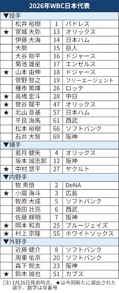 3月に開催される野球の「WBC」、その代表が固まったようだ。