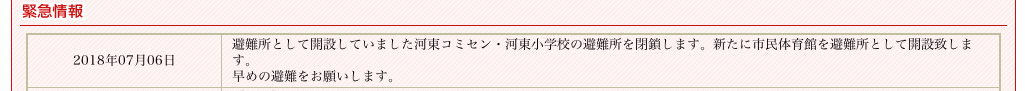 それから、避難場所の1つになっている「河東コミセン」については、その前の道路が冠水したようで、避難所を閉鎖していました。