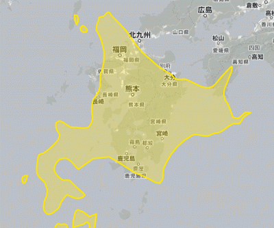 そう言っても、北海道って広いんだよ。ちょっと九州と比べてみよう。