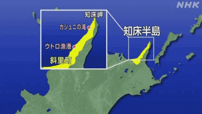 NHKの場合だと、下のような画像が使われていたけど、この「知床半島」の長さって、「70km」もあるんだから。